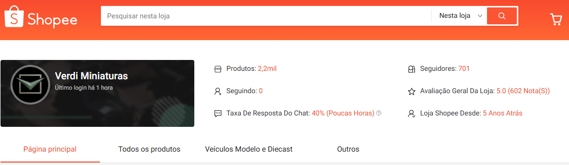 A Verdi Miniaturas também possui loja no marketplace Shopee, onde já recebeu centenas de avaliações positivas de clientes satisfeitos com a qualidade dos produtos, embalagem e rapidez no envio.