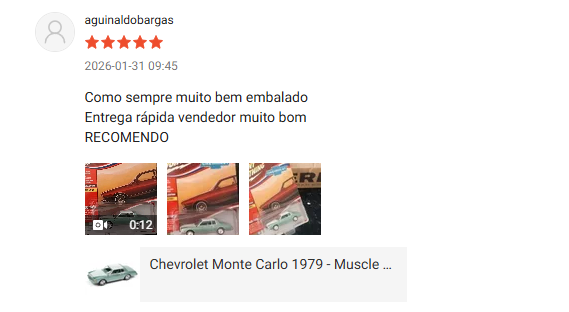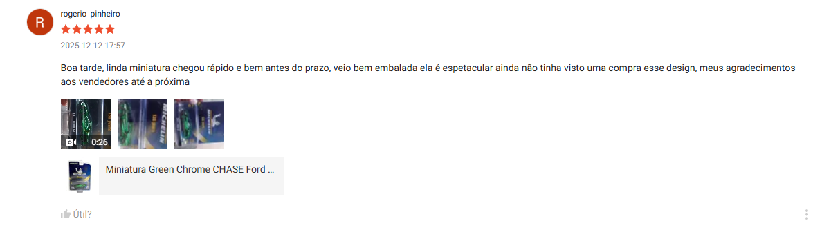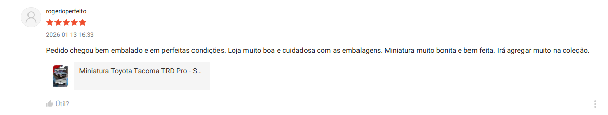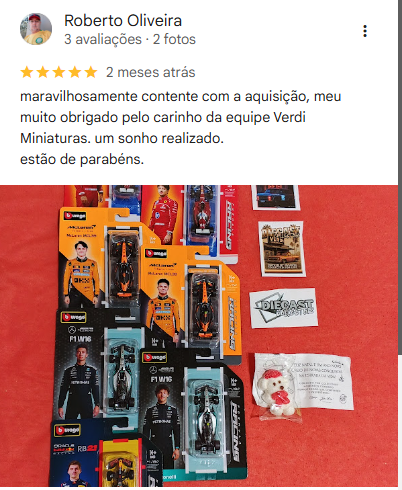 A Verdi Miniaturas também recebe avaliações de clientes no Google Maps, onde colecionadores compartilham suas experiências de compra e fotos das miniaturas recebidas.
