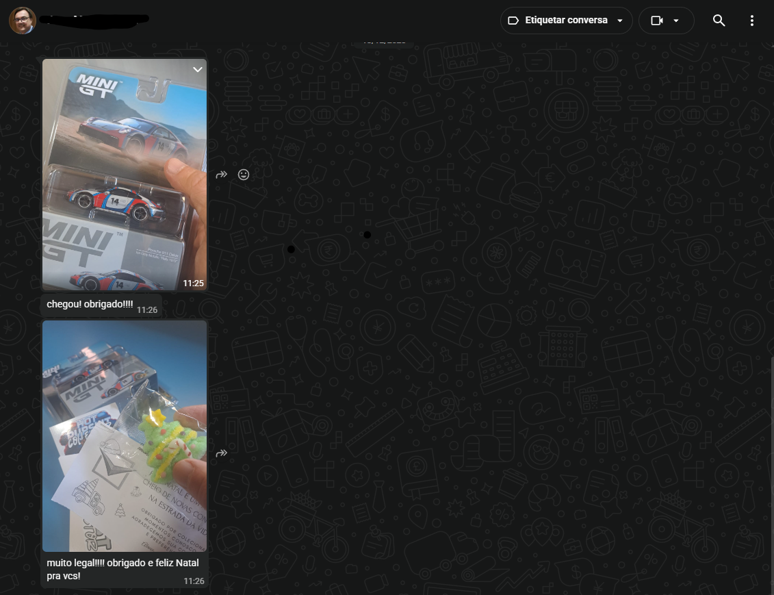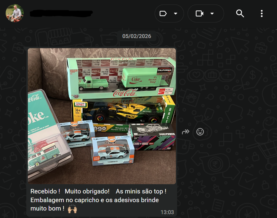 Muitos clientes compartilham conosco pelo WhatsApp o momento em que recebem suas miniaturas. Veja alguns feedbacks reais enviados após a entrega dos pedidos.