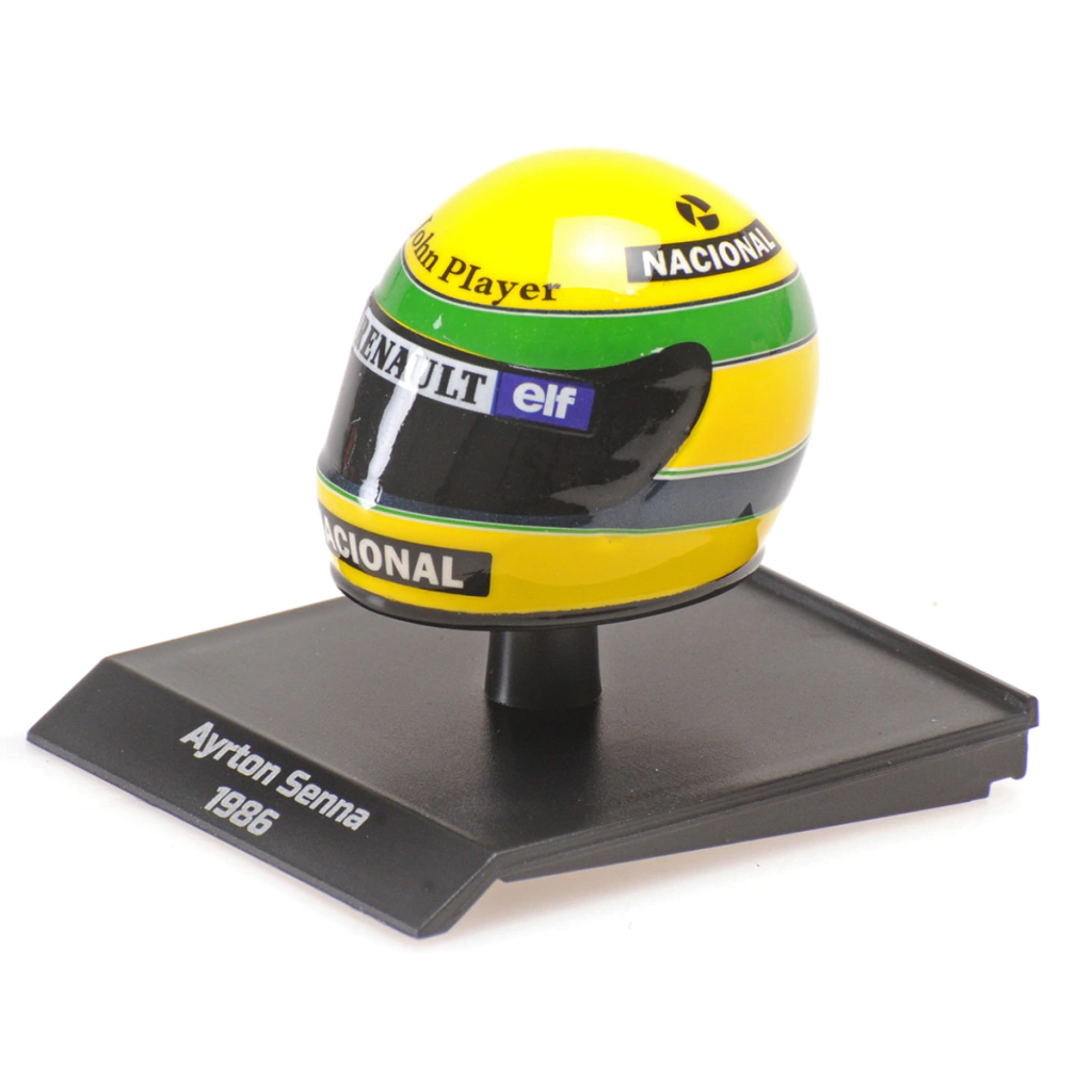 Miniatura Capacete Ayrton Senna 1986 - John Player Team Lotus 98T - Formula 1 - Minichamps - Escala 1:10