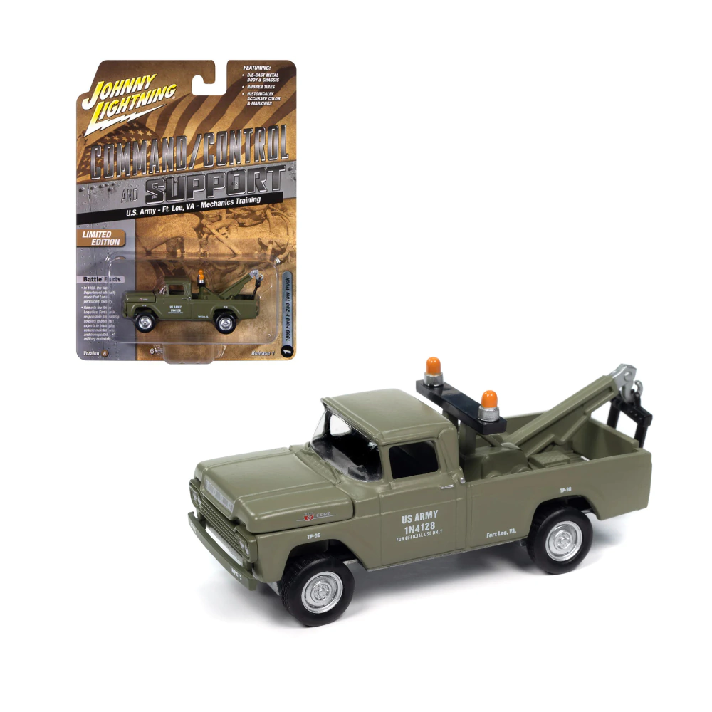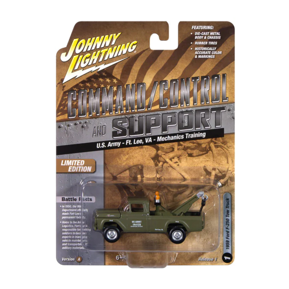 Miniatura Ford F-250 Tow Truck 1959 - Militar - Command/Control and Support - Johnny Lightning – Escala 1:64