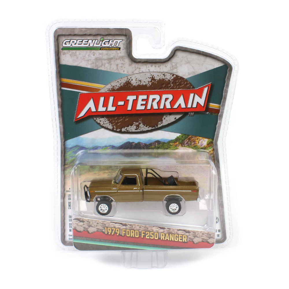 Miniatura Ford F250 Ranger 1979 Lifted Dourada - All-Terrain Série 16 - Greenlight - Escala 1:64